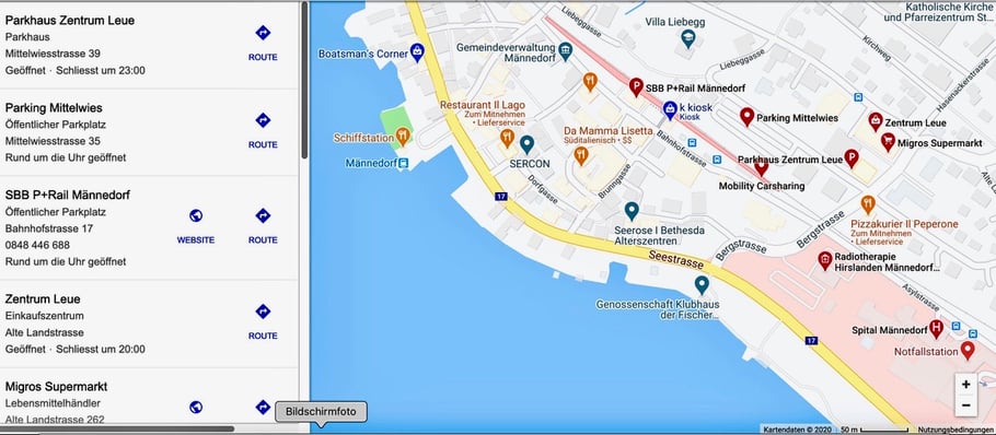 Oben ersichtlich sind sämtliche Parkierungsmöglichkeiten in nächster Umgebung